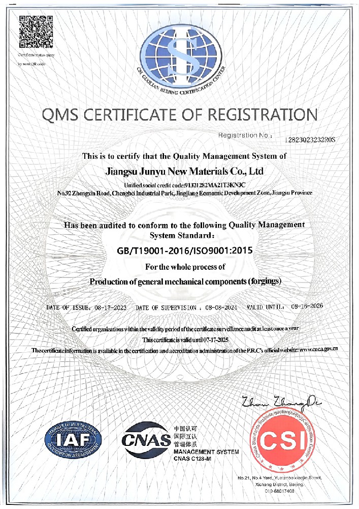 引進(jìn)了鍛造錘、鍛造液壓機(jī)、鍛造輾環(huán)機(jī)以及覆蓋整個(gè)產(chǎn)品熱處理和表面處理工藝的設(shè)備,形成一系列完整的加工流程。